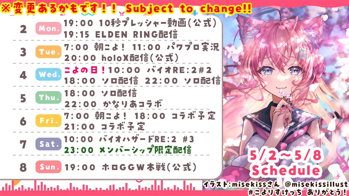 @tephra23#朝こよ 168回おつこよ! ねむねむなこよちゃん、こういうまったり〜な朝こよも好き😊たくさんのホロメン情報やリーク、今日も盛りだくさんだった✨きゅうりにナス、ハマナスと野菜続きでびっくり🫢ヤンデレチャーハンネタがさっそくあったのは笑った🤣 今日の栄冠、春の出場頑張って🍀 #こより実験中 pic.twitter.com/dWmz18EGLz